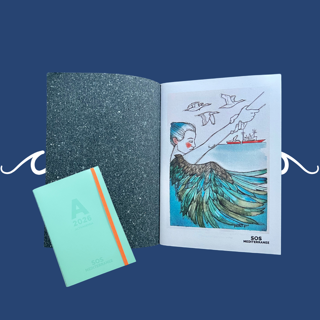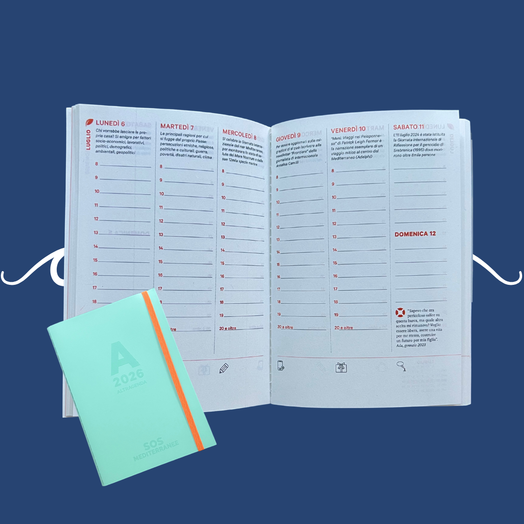 In esclusiva sul nostro sito puoi acquistare la versione speciale dell’ALTRAGENDA 2026, con copertina verde acqua, elastico arancione e doppio logo SOS MEDITERRANEE e Altreconomia.