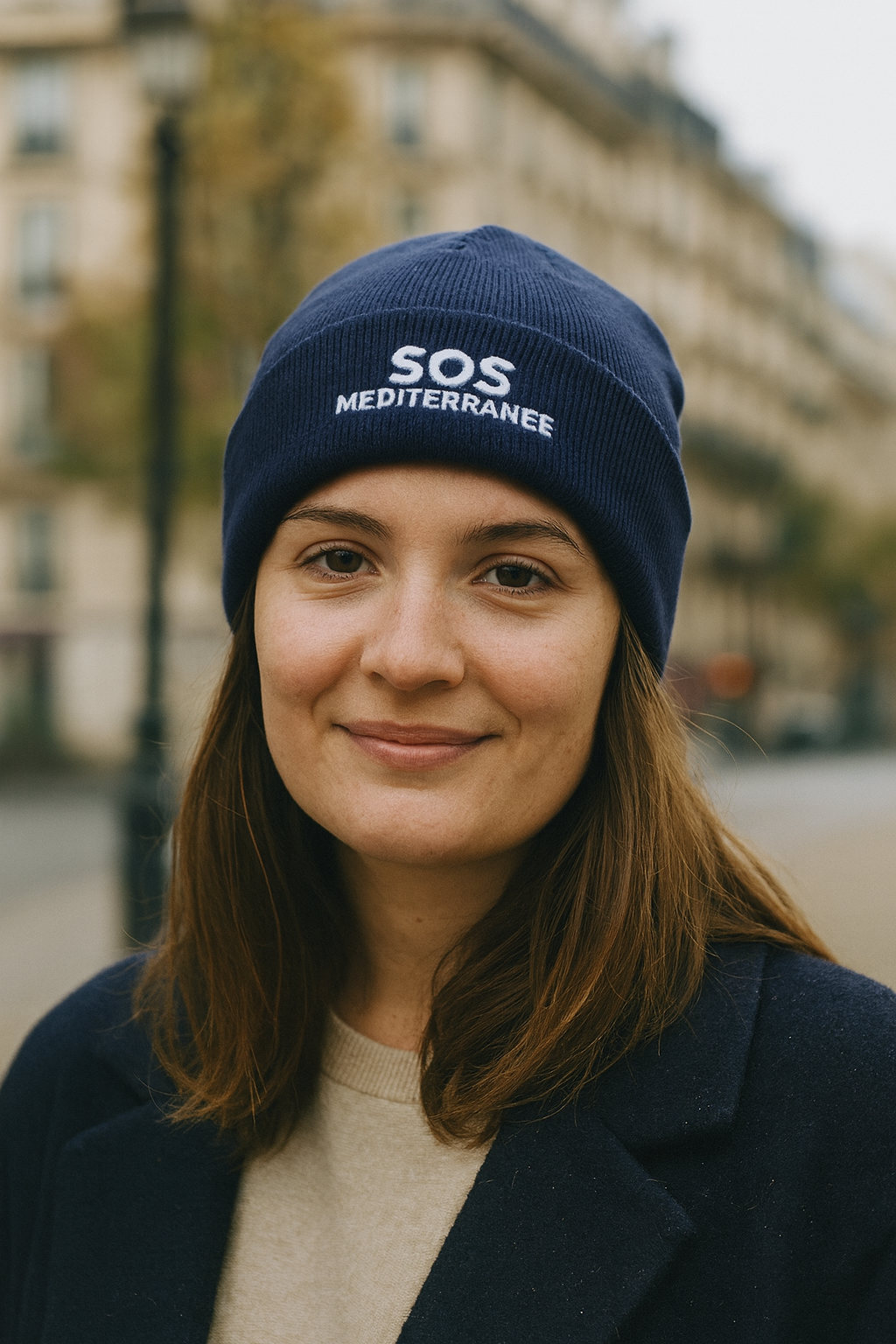 Questo berretto blu navy, con il logo SOS MEDITERRANEE, è un piccolo simbolo di quella scelta.